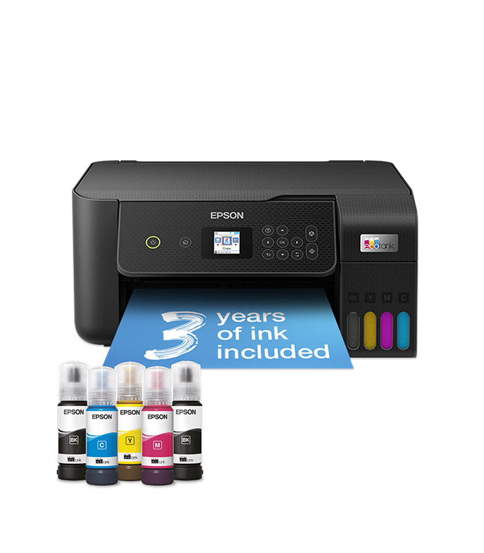 Imprimante multifonction EPSON EcoTank L3260 Couleur – Technologie d’impression: Jet d’encre (tête d’impression Epson Micro Piezo) – Fonction: Impression, Numérisation et Copie – Format Papier: A4 – Vitesse d’impression (N&B/Couleur): 10 pages/min , 5 pages/min – Résolution d’impression : 5,760 x 1,440 DPI (ppp) – Vitesse de Numérisation: recto (couleur et noir , A4): 200 DPI (ppp) – Impression recto/verso: Manuel – Connectivite: USB, Wi-Fi, Wi-Fi Direct – Capacité du bac de sortie papier: 30 Feuilles – Capacité du bac à papier: 100 Feuilles Standard, 20 Feuilles photo – Dimensions: 375 x 347 x 179 mm – Poids: 4 kg – Garantie: 1 an